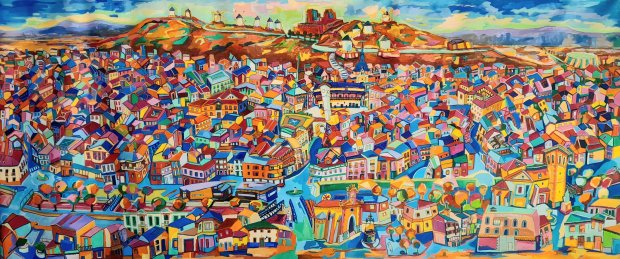 Panorámica de Consuegra, 300×120 cms. Òleo sobre lienzo. 2023.
